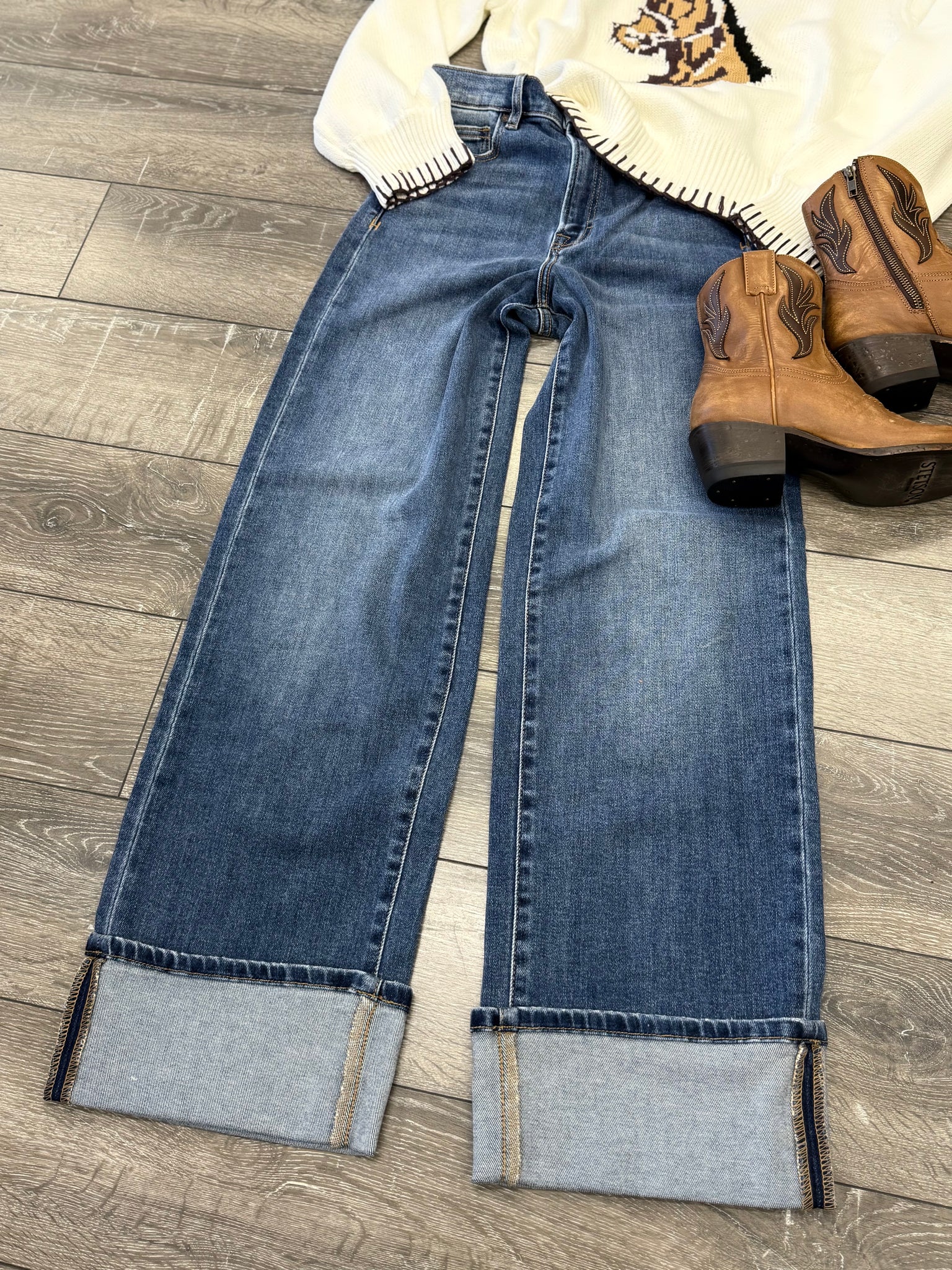 These adorable high rise cuffed jeans with be a pair you go back to time and time again.  Flattering fit, and so comfortable.  Pair it with your favorite blouse or sweatshirt.  Easy to dress up but also you could totally keep it casual.  Has good stretch but recommended to stick with your true size.