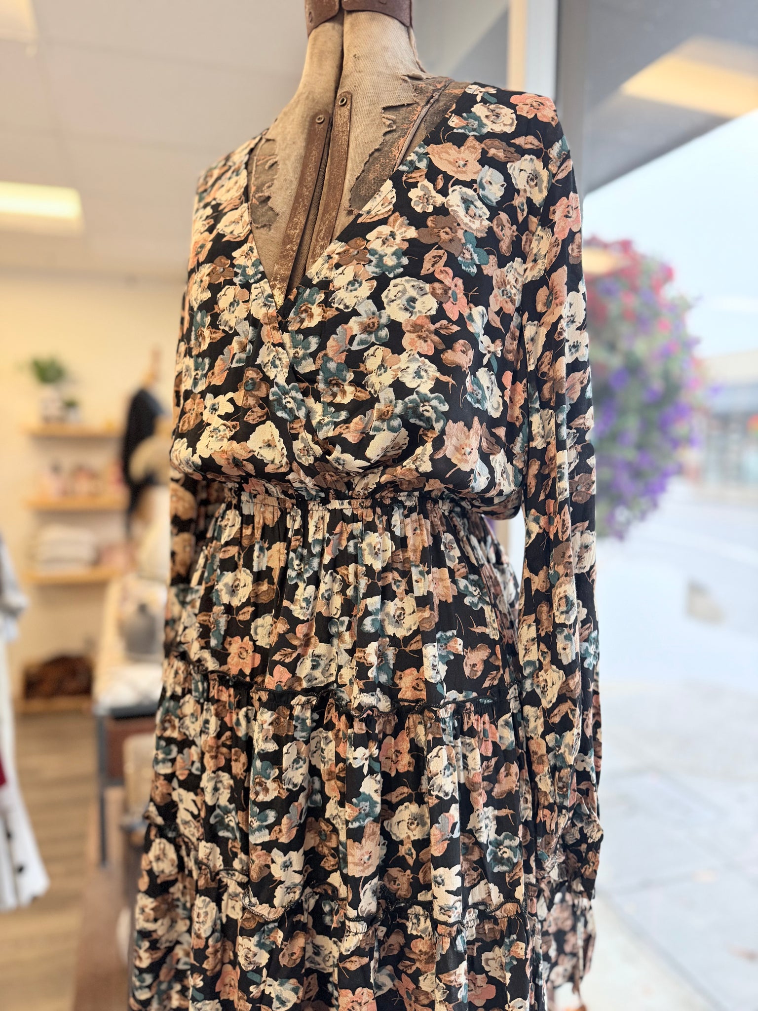 The cutest floral dress for fall! Throw this on with your favorite heels and a denim jacket or belt it and throw on your favorite cowgirl boots. Adorable for your next family photos, fall wedding, or even take it to the NFR.