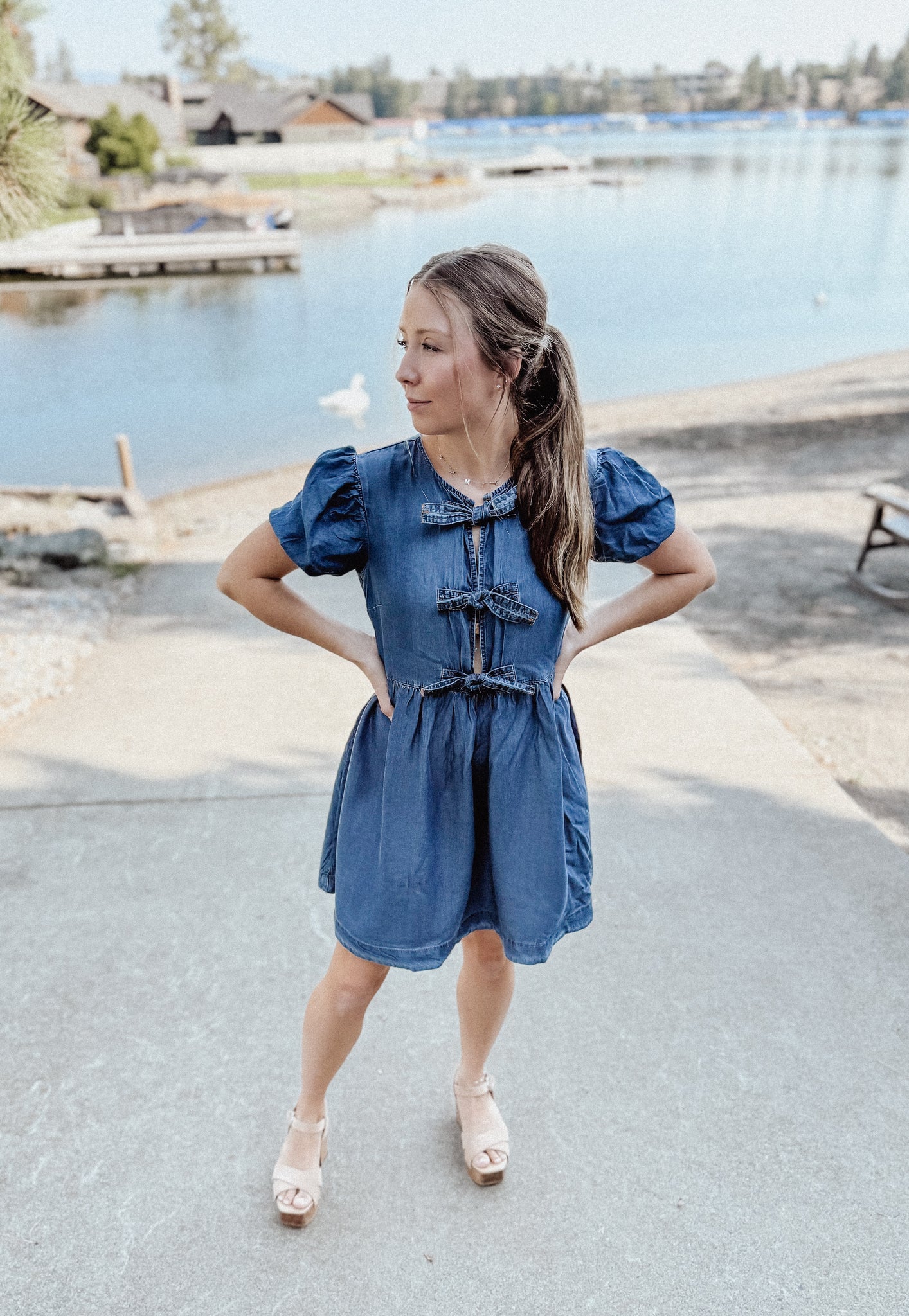 This is a must have for almost any time of the year! Throw it on for your next family photo session, concert, festival, or even your next brunch date with the girls.  Cute puff sleeves and ties in the front.  Throw it on with also any shoe in your closet.  Runs true to size.